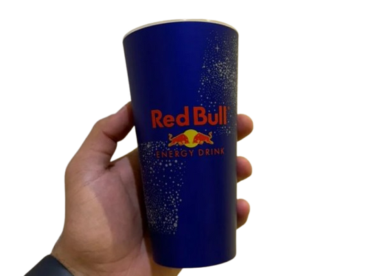The glowing Red Bull cup