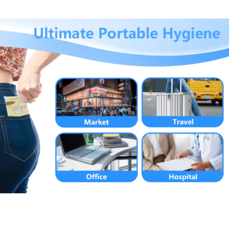 These toilet seat covers are easy to use and flushable. They are perfect for airplanes, travel seats, public restrooms, and camping.